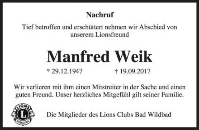 Lions Club Bad Wildbad - Multidistrikt: 111, Distrikt: Süd-Nord, Region: II, Zone: 5