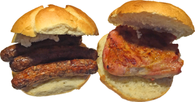 Mit dem Lions-Griller „drei im Weckle“ (drei Nürnberger Rostbratwürste),