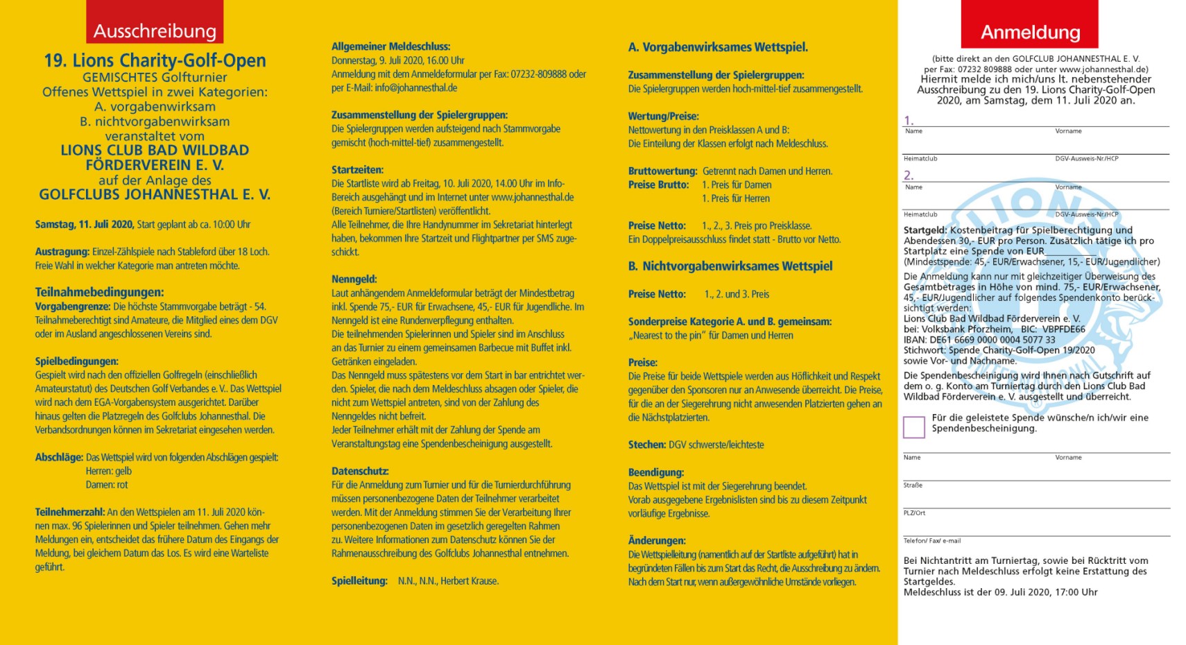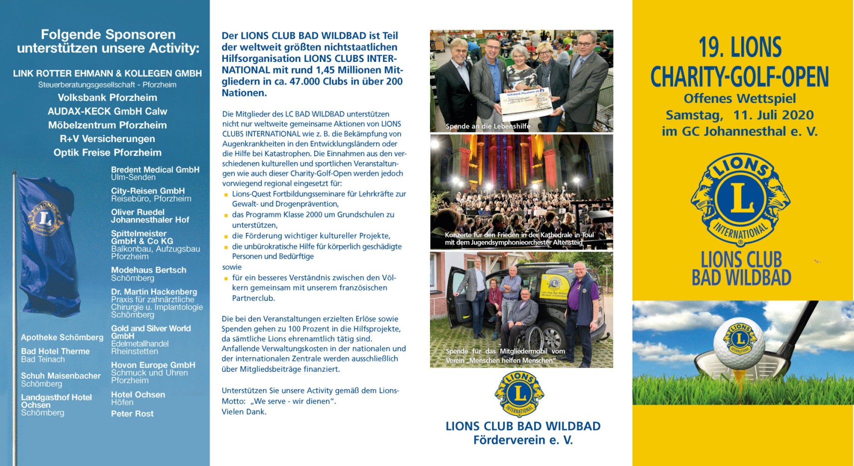 Unter diesem Motto veranstaltete der Förderverein des Lions Club Bad Wildbad am Samstag, den 11. Juli 2020 seine 19. Lions Charity-Golf-Open auf der Anlage des Golfclubs Johannesthal.