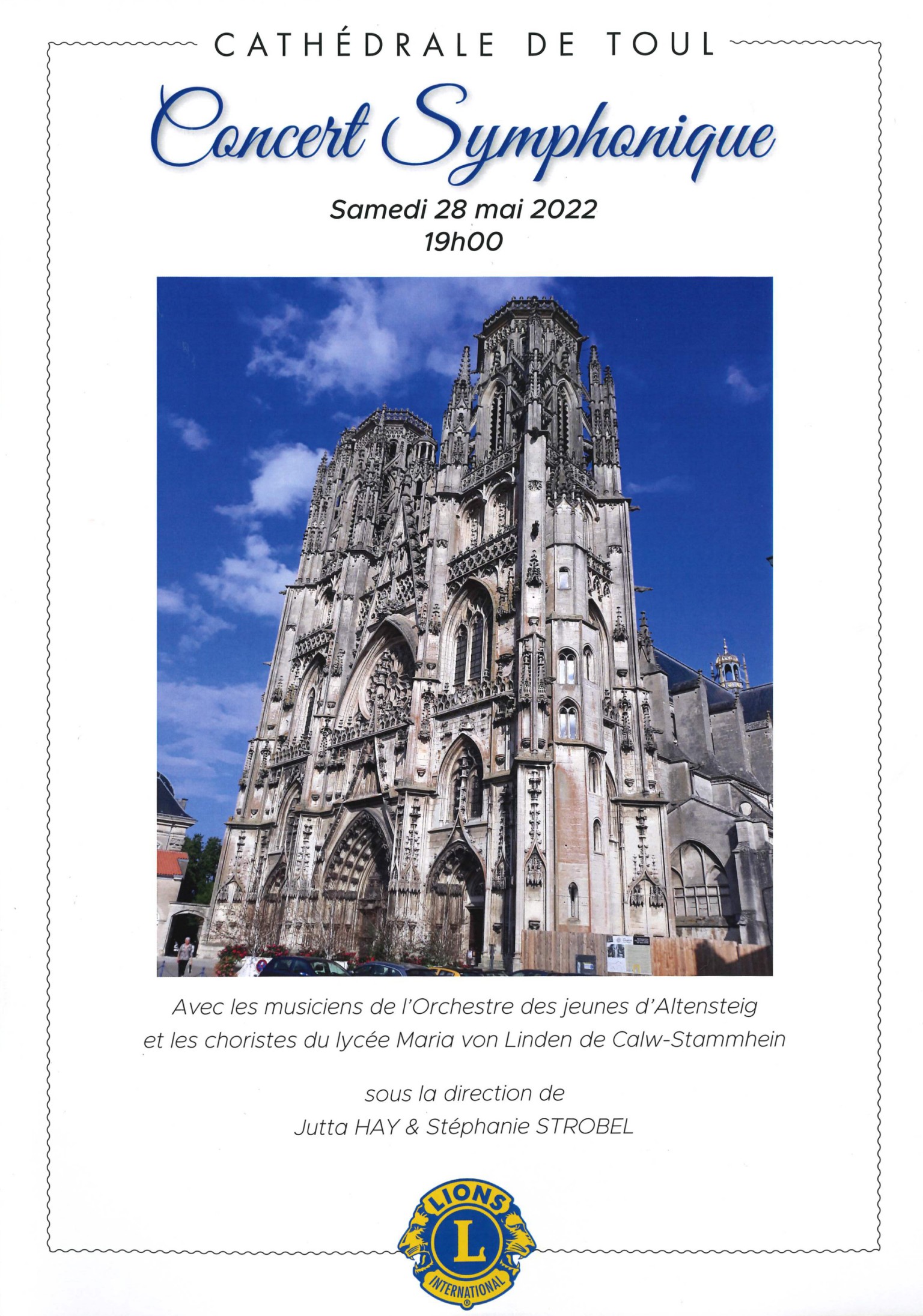 Zum vierten mal organisierte der LIONS CLUB Bad Wildbad gemeinsam mit mehreren französischen Lions Clubs ein Konzert des Jugendsymphonieorchesters Altensteig und dem Chor des Maria-von-Linden-Gymnasiums Calw in der geschichtsträchtigen Kathedrale von Toul/Frankreich.