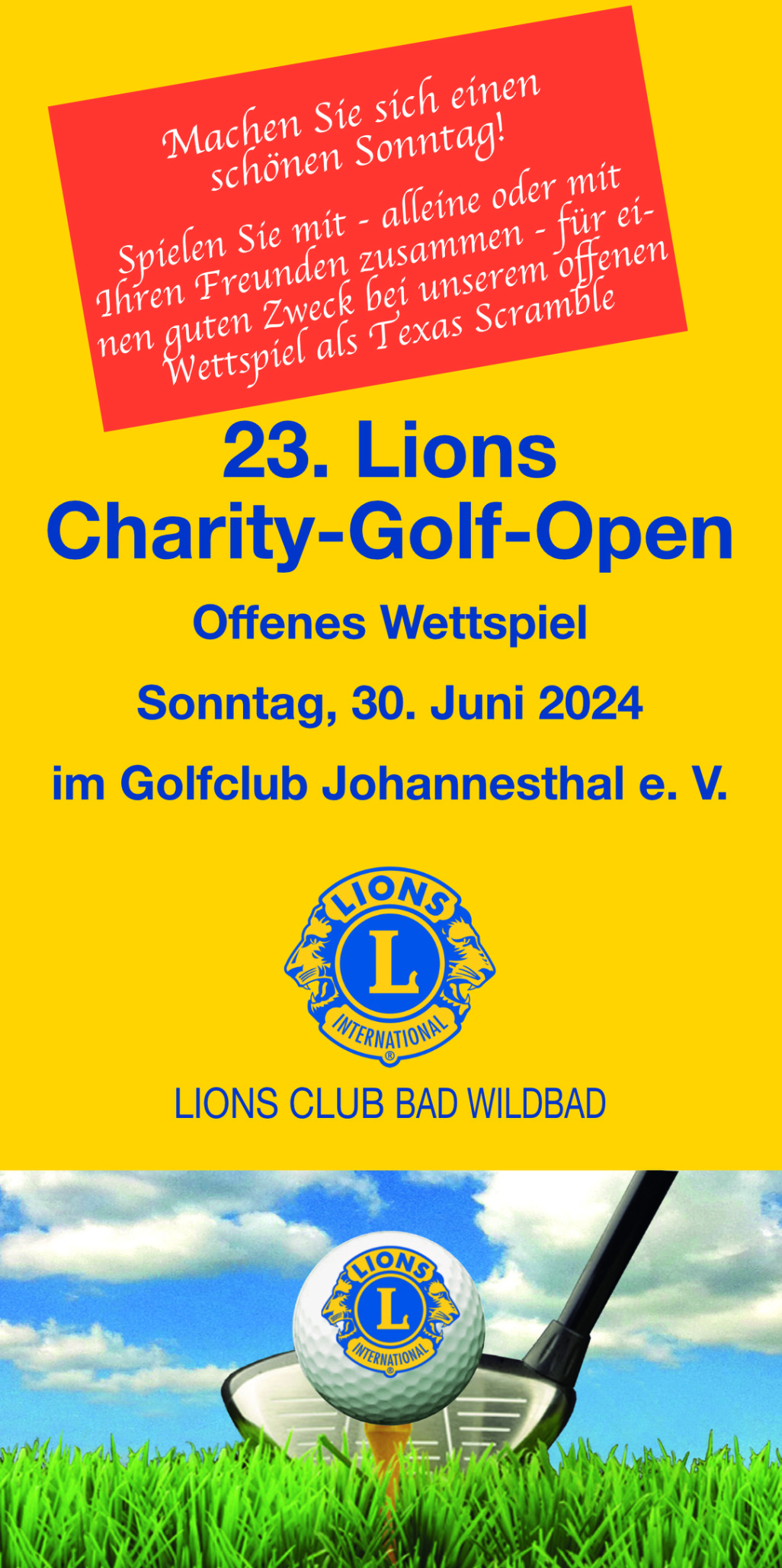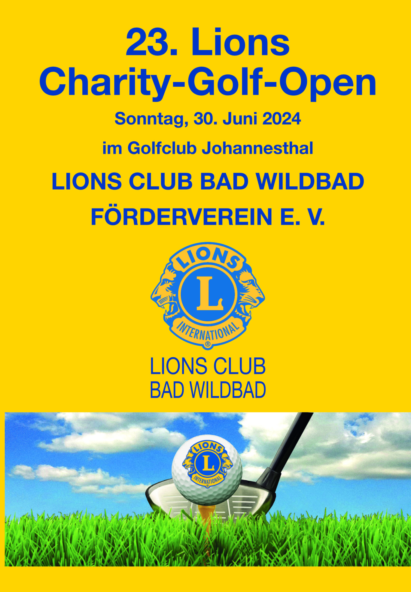 Der Förderverein des Lions Clubs Bad Wildbad veranstaltet am Sonntag, den 30. Juni 2024 seine 23. Lions-Charity-Golf-Open auf der Anlage des Golfclubs Johannesthal bei Königsbach.