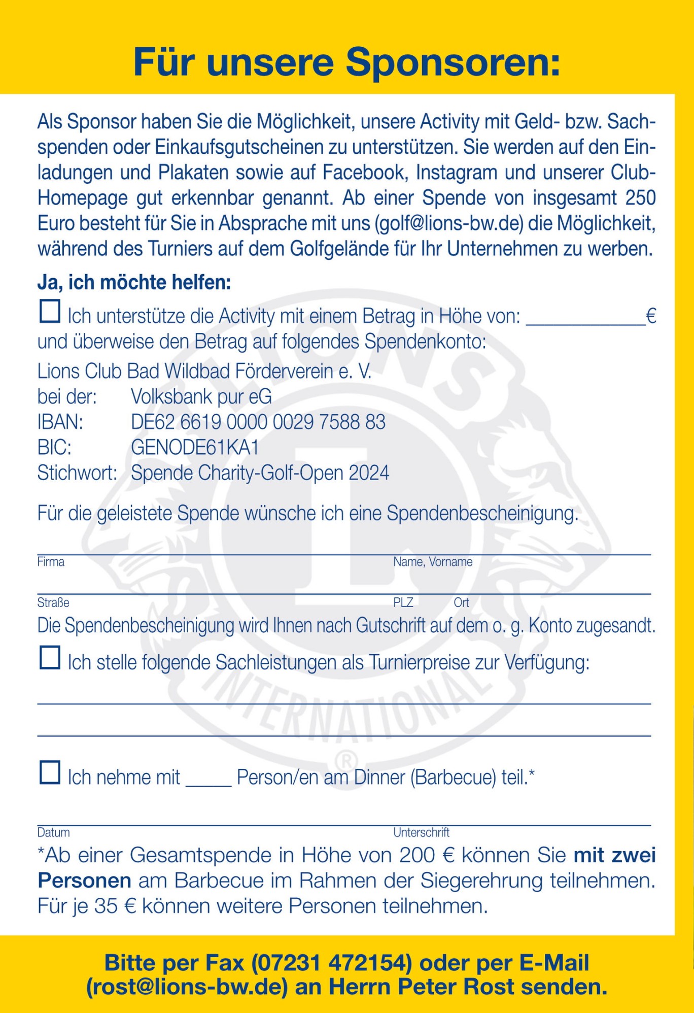 Für ein erfolgreiches Turnier sind wir auf Ihre Unterstützung angewiesen!