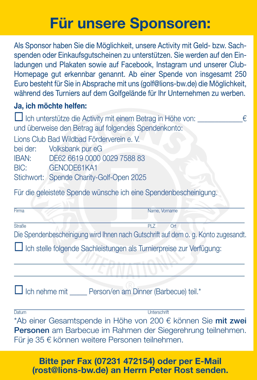Für ein erfolgreiches Turnier sind wir auf Ihre Unterstützung angewiesen!