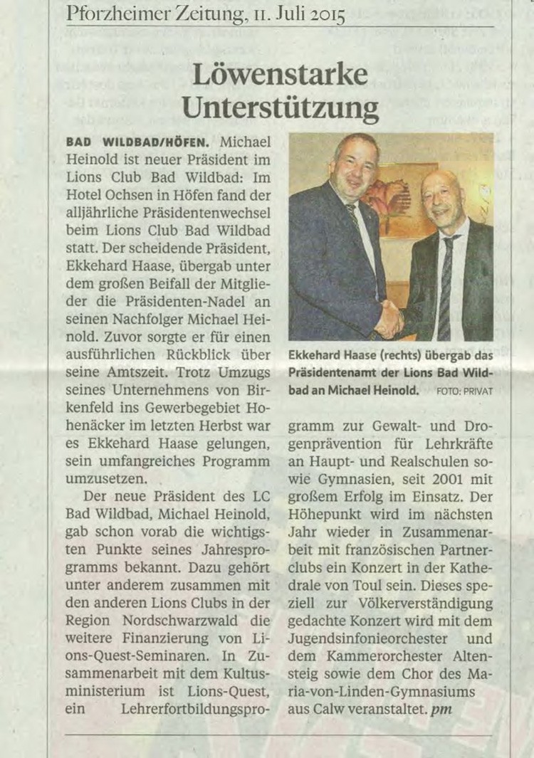 Lions Club Bad Wildbad - Multidistrikt: 111, Distrikt: Süd-Nord, Region: II, Zone: 5