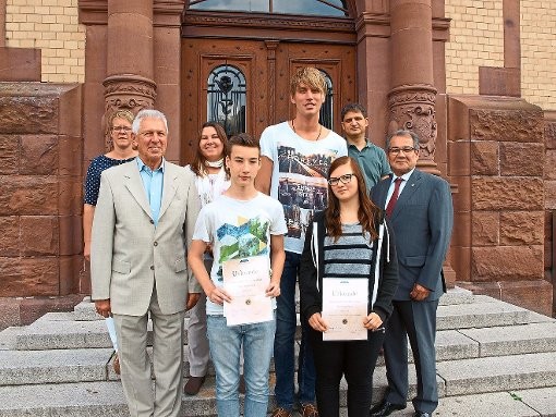 Zur Preisverleihung in Gegenwart des stellvertretenden Schulleiters Konrektor Guido Störk, von Konrektorin Tanja Insinna sowie der Klassenlehrer Janine Kunz (8a) und Matthias Roth (9d) kamen der neu gewählte Präsident des Lions Club Günther Keck (Bad Liebenzell) sowie Herbert Krause (Calw) als Vorsitzender des Fördervereins in die Fünf-Täler-Schule an der Höfener Straße in Calmbach. Völlig überrascht waren die beiden Schüler, die nichts von der Preisverleihung wussten und direkt aus ihren Klassen geholt wurden. Sie schilderten ihre Aktivitäten, denen vom Lions Club ein hoher Stellenwert zuerkannt wurde.