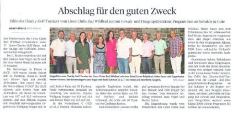 Abschlag für den guten Zweck: Charity-Golf-Turnier des Lions Clubs Bad Wildbad