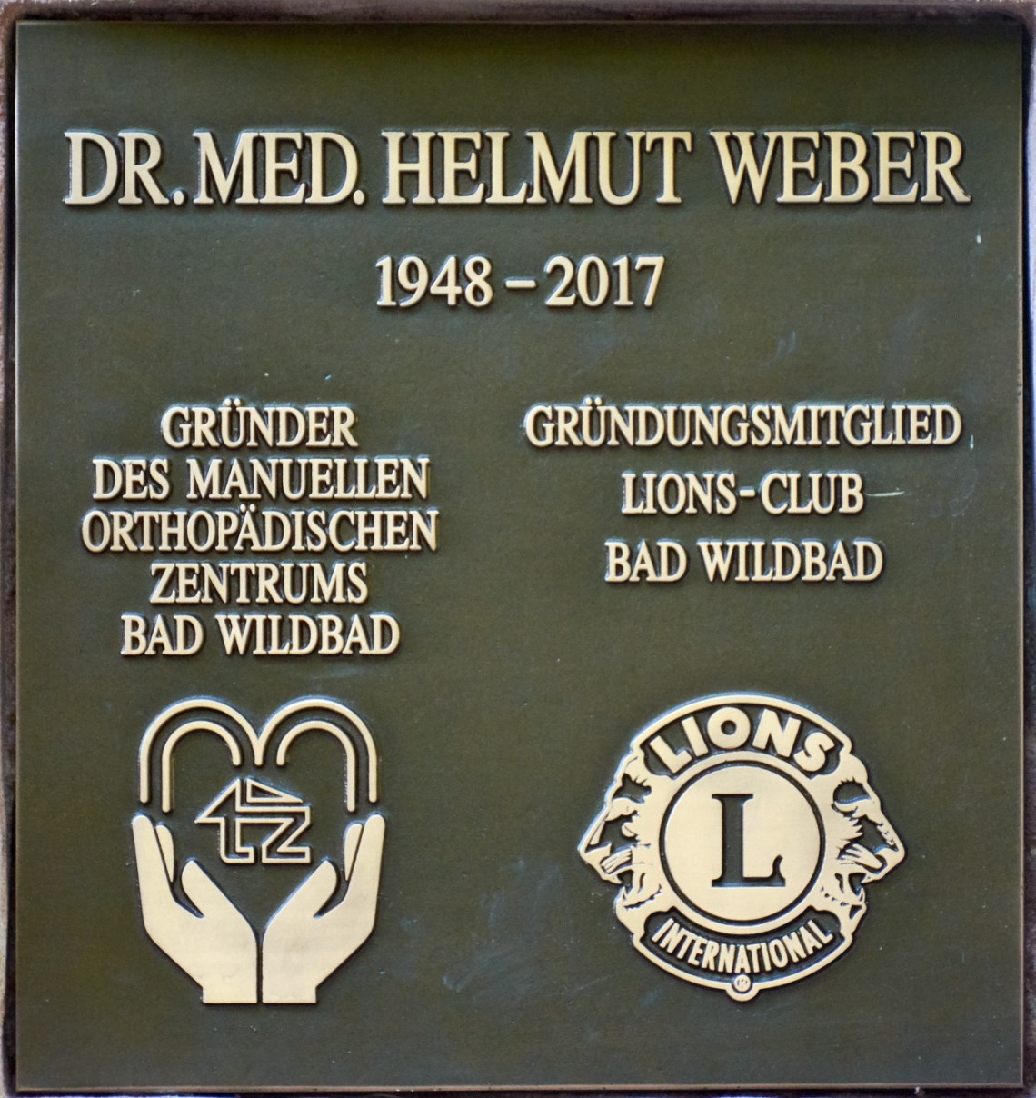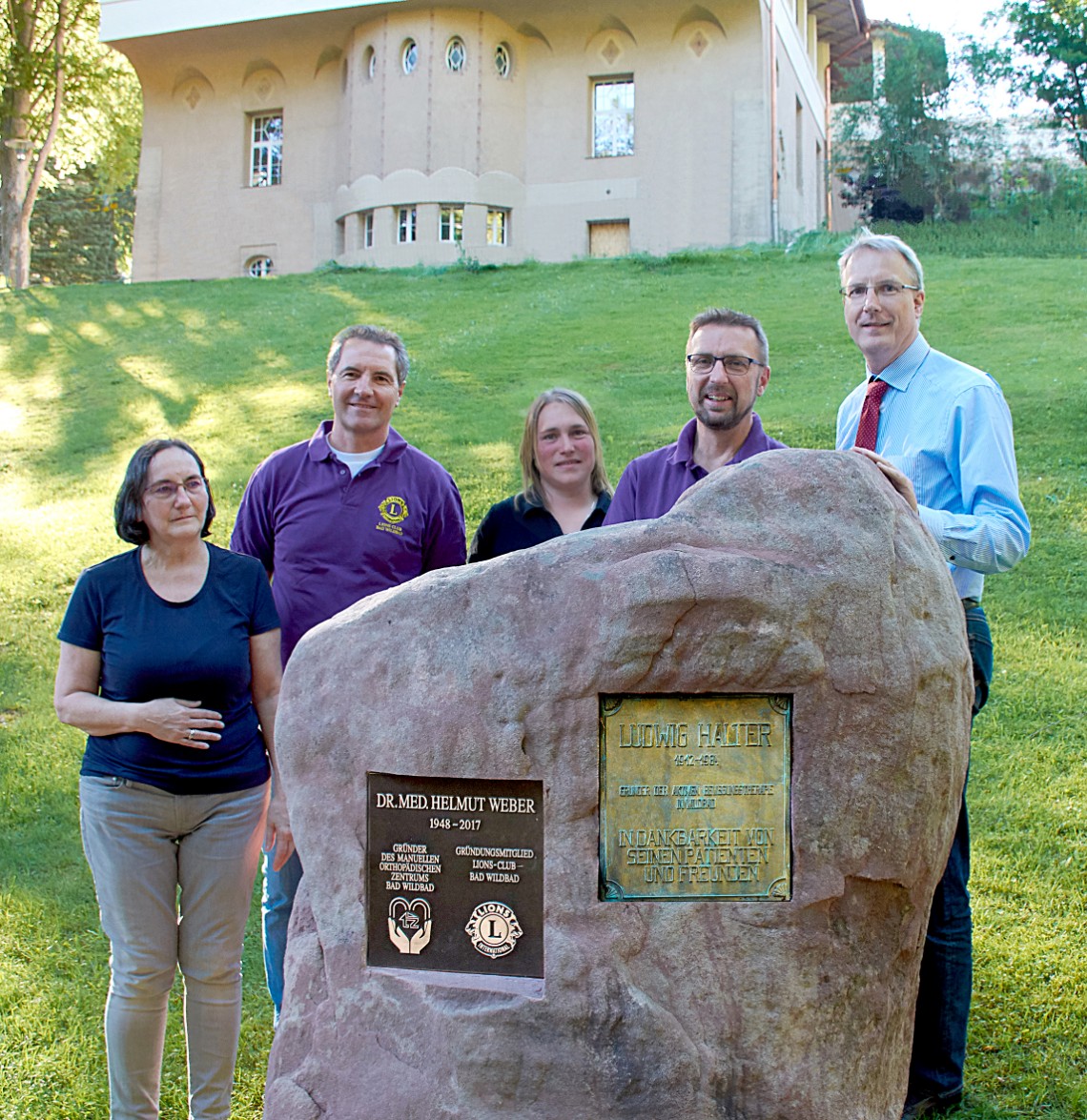 Bad Wildbad. »Helmut Weber, Gründer der Praxis für manuelle Orthopädie, Mitbegründer des Therapie-Zentrums und ein begnadeter Chirotherapeut ist leider Ende 2017 all zu früh gestorben« heißt es in einer Pressemitteilung des Lions Clubs Bad Wildbad. Die Mitglieder des Lions Clubs, dessen Gründungsmitglied er war, beschlossen daraufhin, ihm ein dauerhaftes Andenken zu schaffen. Es habe sich angeboten, auf dem Gedenkstein, den Helmut Edelhof und Harald Leibniz für Ludwig Halter, dem Initiator des Ganzen, im Kurpark in Bad Wildbad einst gespendet hatten, eine weitere Tafel anzubringen.