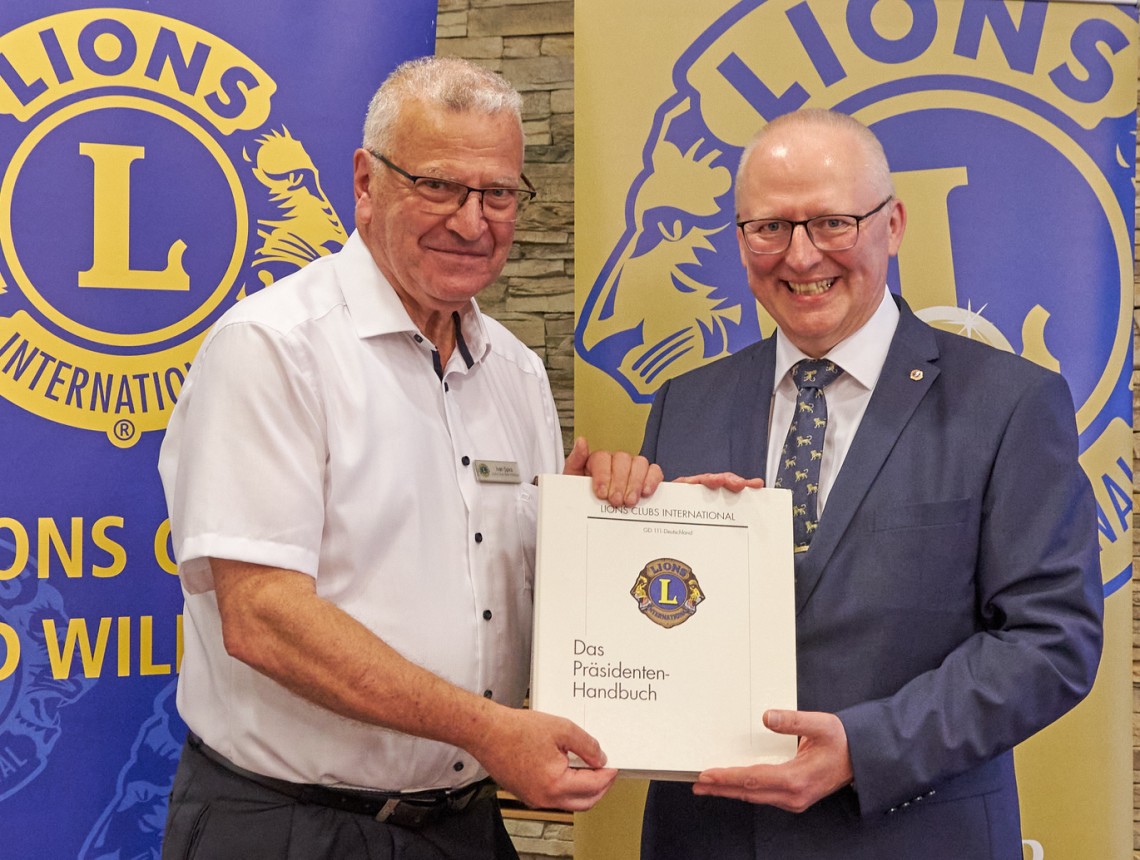 Ivan Spira (links) übergibt seinem Nachfolger Erhard Sträßner das Präsidenten-Handbuch.