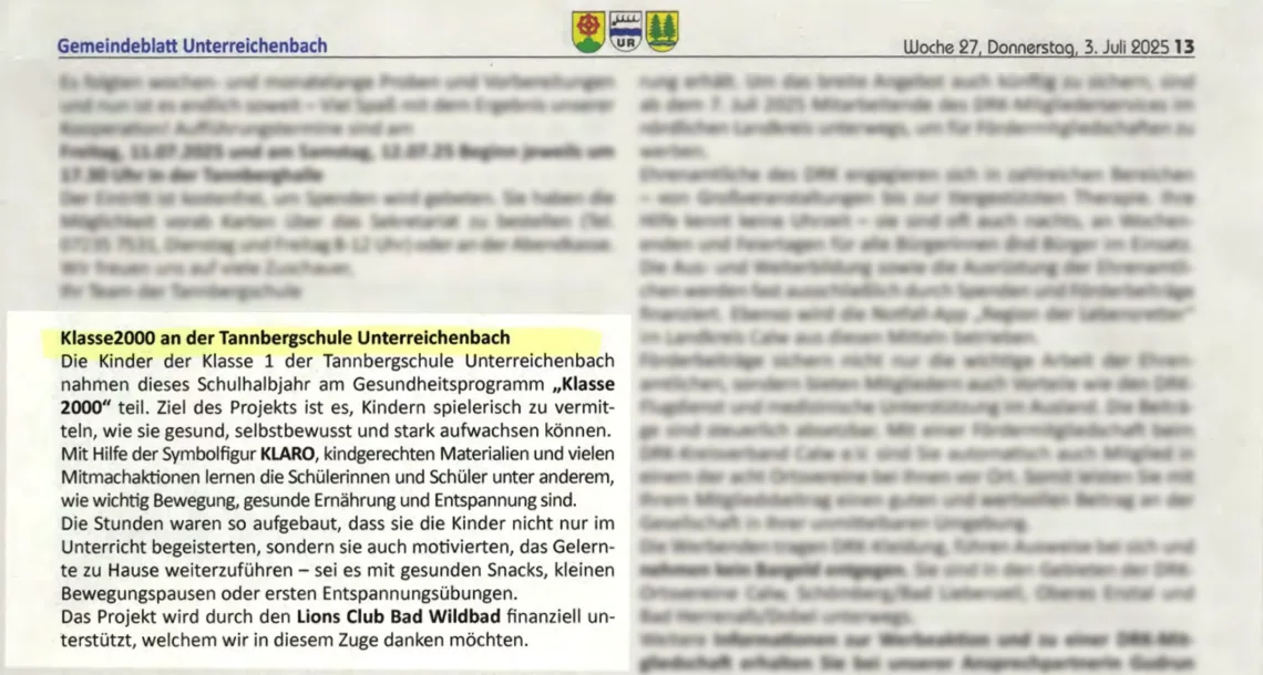 Gemeindeblatt Unterreichenbach, 3. Juli 2025