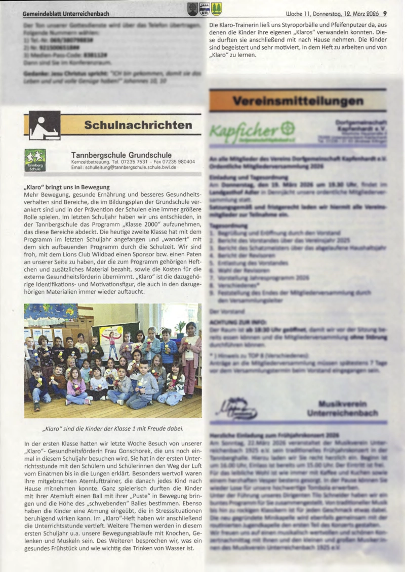 Gemeindeblatt Unterreichenbach, 12. März 2026